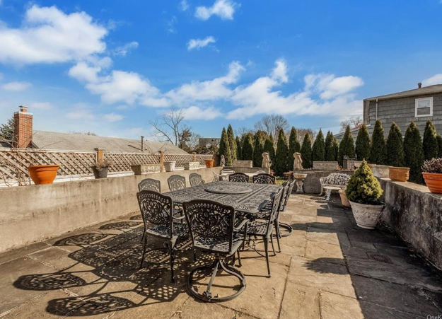 Welcome home to this former carriage house situated on a cul-de-sac in the heart of Northern New Rochelle. This classic red brick home boasts 4 bedrooms + 2 bonus rooms, 2.5 baths and many characterful features. As you step inside, you'll be greeted by a spacious entry foyer lined with custom built-in closets and an updated powder room. The eat-in kitchen is surrounded by windows and has been updated with stainless steel appliances and custom cabinetry throughout. Enjoy direct access from the kitchen to your terrace, which has the ambiance of a Tuscan retreat. The great room has a fireplace and two sliding glass doors. First floor has an option for primary bedroom potential! Historic charm & modern touches create a comfortable and inviting atmosphere. The slate roof, arched transitions and root cellar are among them. Basement can be finished for additional space. Easy access to The Golden Horseshoe shopping, George M. Davis Elementary, Houses of Worship & Carpenter's Pond Park.