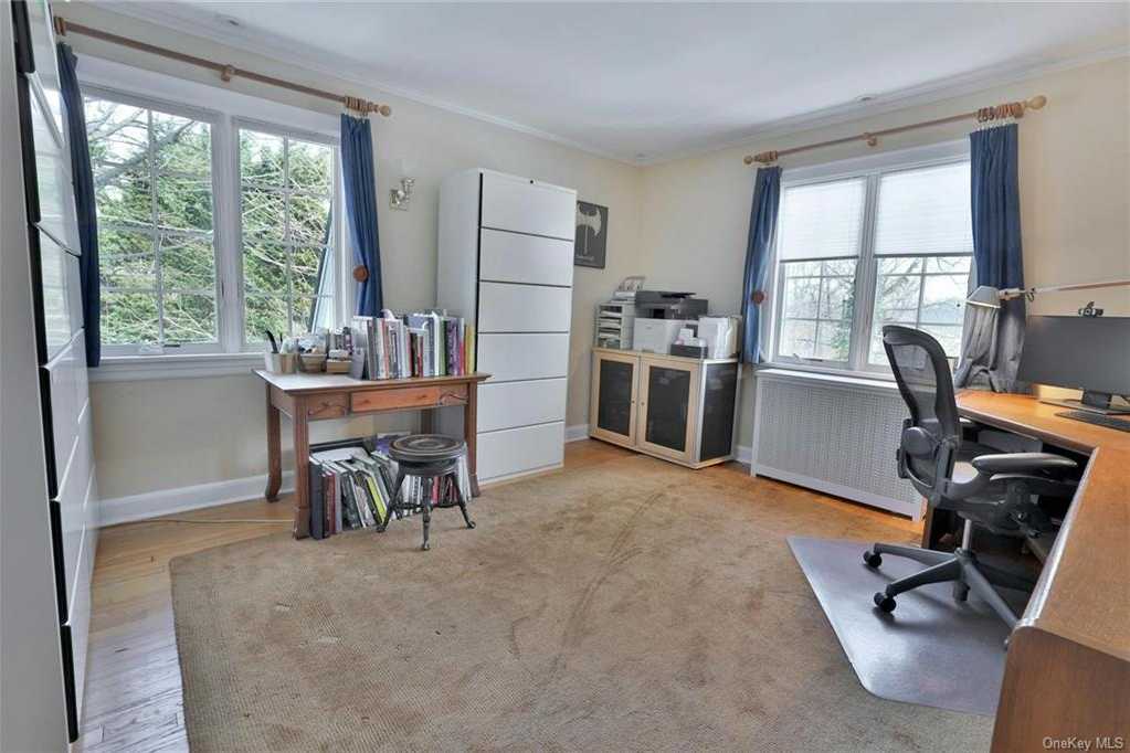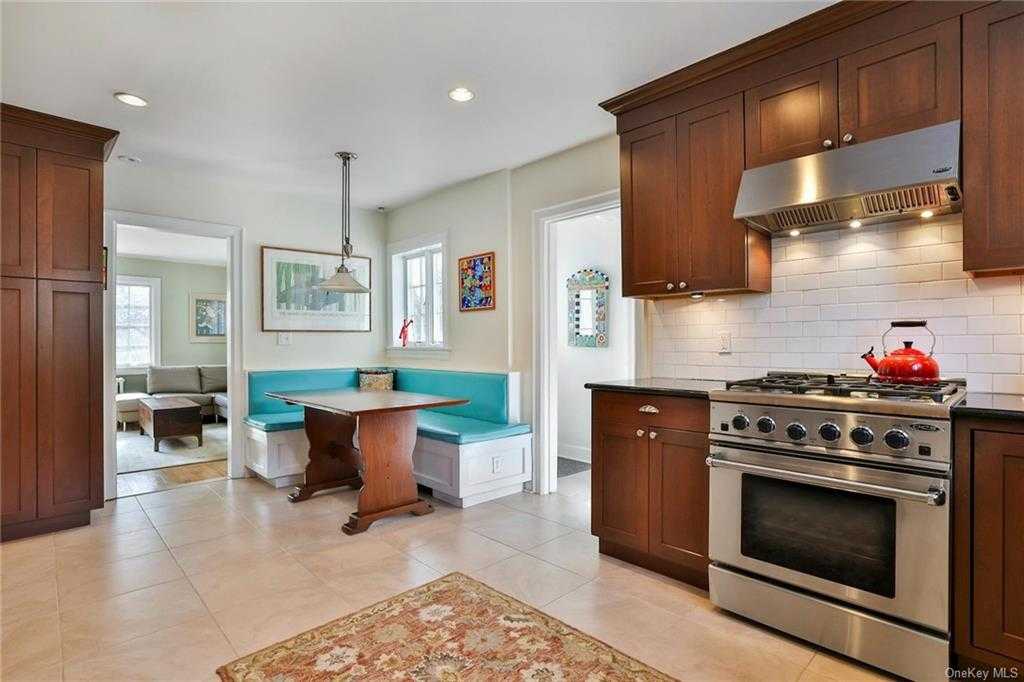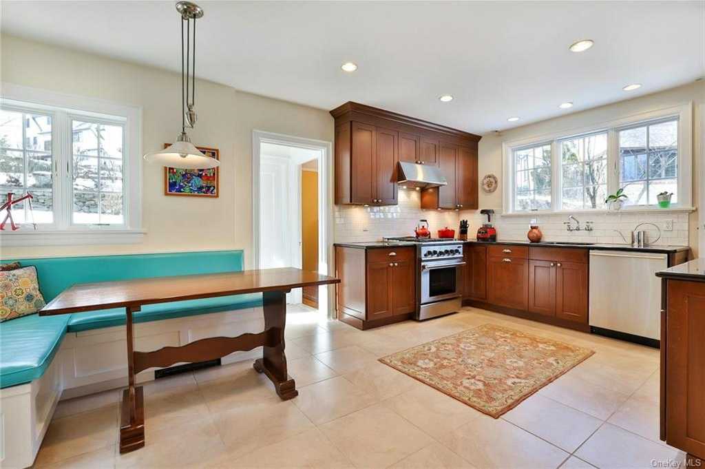 This sunny and versatile 5-bedroom 3-bath Tudor home is move-in ready. Fully updated with central AC, new windows, and more, the house exudes elegance on a coveted street in sought-after Paine Heights, New Rochelle. Take the bluestone walkway and step through the oak front door into a bright living room centered on a gas fireplace. The adjacent dining room has French doors to the front terrace, and a wall of windows that bring the outside in. A comfortable family room seamlessly flows into the beautifully renovated eat-in kitchen that boasts top-of-the-line Bosch and Jenn-Air appliances and abundant custom cabinetry. A versatile 5th bedroom with a full, modernized bathroom completes the mail level. Upstairs, discover 4 bedrooms and 2 full baths, including an en-suite primary, each offering plenty of space for relaxation and an abundance of closets. The large bonus finished third level provides flexibility for play, work, or an additional bedroom, plus plenty of additional storage Eat al-fresco on the serene backyard patio with the perfect space ro create a fire-pit. Enjoy complete privacy, room to run around and an ideal set-up for a jungle gym, surrounded by a mature garden of ornamental shrubbery and trees. Hardwood floors are found throughout, and special details like a gas fireplace, original stained glass windows, crown moldings, a back porch, and a built-in breakfast nook add personality. The partially finished attic and basement make this home even bigger than it seems. 311 Lyncroft Road is conveniently located near several scenic ponds, New Rochelle High School, a children's library, playgrounds, shops, restaurants, places of worship and transportation. Don't miss the opportunity to call this gem your home!